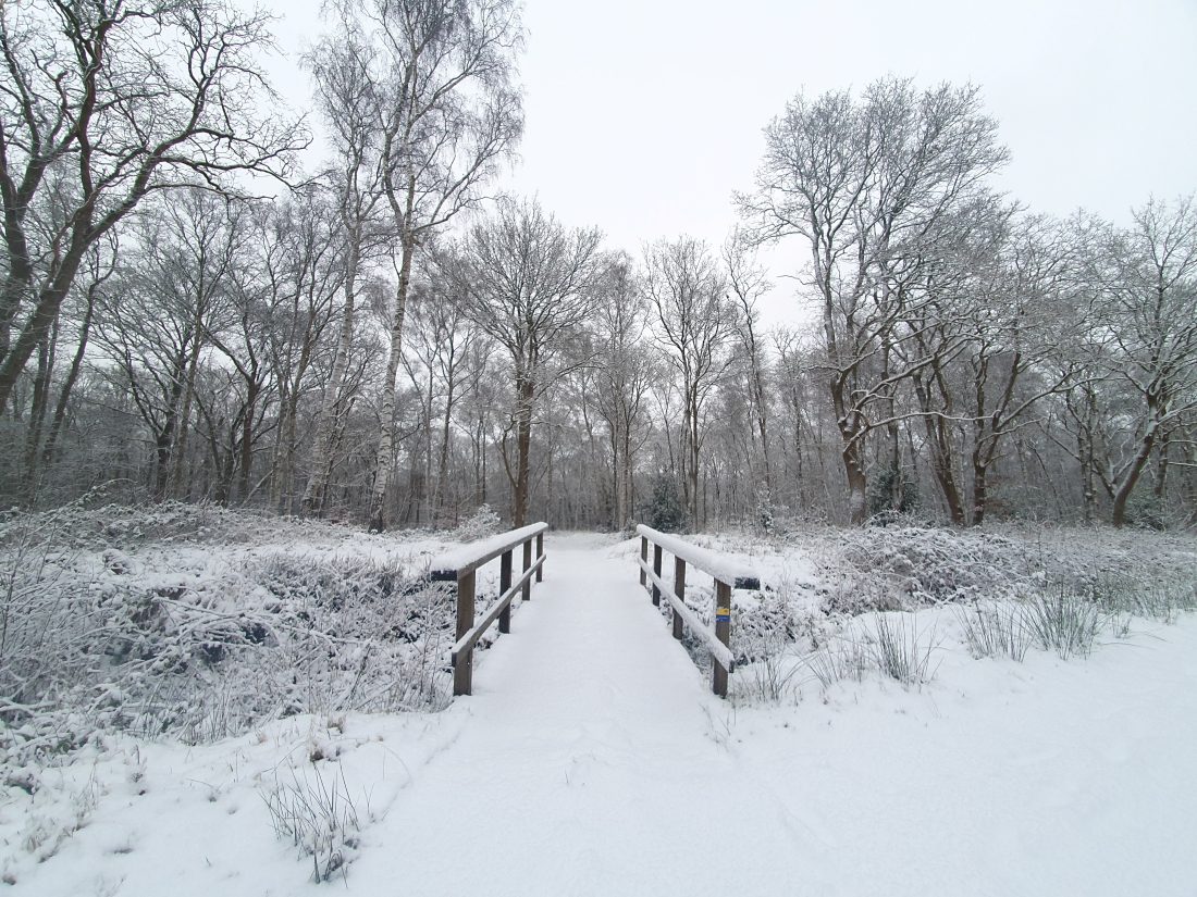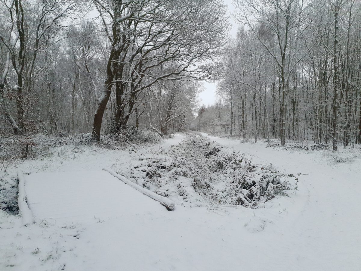 Een dikke laag sneeuw bedekt de paden, de velden en de bomen. Het landschap oogt onaangeroerd, bijna tijdloos. Takken buigen onder het gewicht van de sneeuw, grassen verdwijnen onder een zachte wit deken en contouren vervagen. Alles lijkt even tot rust gekomen.
